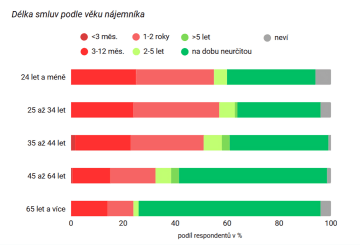 Trend bydlení v nájmu přináší právní nejistotu bydlení – především nedostatečnou ochranu před nečekanou výpovědí, neférovým zvýšením nájmu nebo jinými riziky spojenými s nájemním bydlením. Krátkodobé smlouvy se v České republice stávají běžnou praxí, zejména mezi mladými nájemníky. Téměř 60 % osob ve věku 25-34 let má smlouvu na dobu kratší než dva roky, což je mezi všemi věkovými skupinami nejvyšší podíl. Naopak smlouvy na dobu neurčitou jsou v této skupině vzácné, má je jen třetina nájemníků (MMR, 2024).