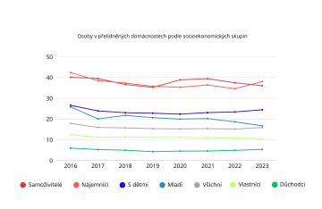 ČSÚ (2024) upozorňuje na radikální změny ve skladbě domácností, kdy došlo k propadu počtu domácností tvořených rodinou se dvěma dospělými se závislými dětmi. V posledních třiceti letech byl pokles jejich zastoupení z 33,6 % na 20,4 %. Naopak došlo ke strmému nárůstu domácností jednotlivců, kterých za posledních 30 let přibylo v absolutním vyjádření více než 755 tisíc.