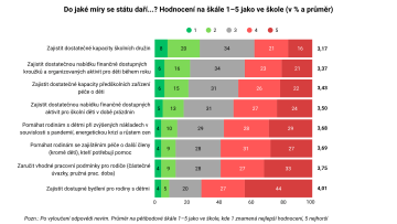 Platby za školní družinu představovaly pro většinu rodin přijatelnou zátěž - nejčastější hodnotou udávaných výdajů (modus) na družinu bylo 200 Kč měsíčně, stejná byla i středová hodnota (medián). Naprostou spokojenost s kapacitou školních družin vyjádřilo jen 8 % rodičů . Podobně negativní hodnocení se týká i dalších oblastí, jako je finanční dostupnost kroužků, kapacity předškolních zařízení a nabídka aktivit pro školní děti během prázdnin. Ženy, často hlavní pečující osoby, vnímají tuto problematiku hůře než muži. V menších obcích, kde je nabídka těchto zařízení omezená, i ve velkých městech, kde sice existuje široká nabídka, ale kapacity jsou nedostatečné, převažuje rovněž negativní hodnocení (Paloncyová et al., 2023).