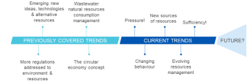 - Nové zdroje surovin - Hledání nového druhu surovin, kvůli nedostatku nerostných surovin a jejich zvyšujícím se cenám; další směřování k principům cirkulární ekonomiky. Dále také rozrůstání nových možností zdrojů z nového prostředí.