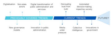 Tradiční modely vládnutí procházejí pod tlakem technologických inovací, rostoucího vlivu nevládních aktérů a změn ve způsobu šíření informací zásadní proměnou. Digitální technologie mění fungování demokracie a decentralizované formy správy, kolektivní inteligence a automatizované rozhodování získávají na síle. Současně je pak pod útokem demokracie jako systém vlády – v roce 2024 žilo podle Democracy Indexu pouze 45% světové populace v plně demokratických státech, v hybridních a autoritářských státech pak 39% (The Economist Intelligence Unit 2024).