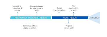 Práce tažená smyslem - Vzrůstající důraz na wellbeing na pracovištích, cílem bude zapojit pracovníky více do určování pracovních procesů. Vzrůstá důležitost vnímání smyslu práce, vysoká míra automatizace umožňuje více prostoru na přemýšlení nad smysluplností činnosti.