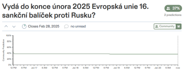 Rand Forecasting Initiative (RFI) se zabývá tím, zda bude na začátku června letošního roku Vladimir Putin stále ruským prezidentem - a predikce velmi jednostranná, forecasteři RFI přikládají pádu Vladimira Putina pravděpodobnost právě 1%. Znění celé otázky je následující: Will Vladimir Putin cease to be the president of the Russian Federation before 1 July 2025? Souhlasíte s predikcí RFI a nebo byste zvolili jinou pravděpodobnost?