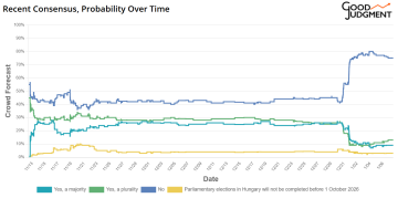 V Maďarsku proběhnou v roce 2026 klíčové volby, ve kterých se ukáže, zda se Strana Fidesz premiéra Viktora Orbána udrží u moci. Komunita platformy Good Judgment Open se věnuje otázce, zda získá Fidesz většinu či nikoli, resp. zda získá nejvyšší počet mandátů. Co si myslíte vy?