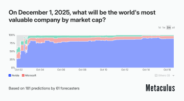Na Metaculu začal nový turnaj, který platforma organizuje společně s RAND Forecasting Initiative a která se zaměřuje na celé spektrum téma s důrazem na ekonomiku, geopolitiku a technologie. Jedna z nejvíce predikovaných otázek se táže na to, která firma bude nejhodnotnější podle tržní kapitalizace na začátku prosince 2025. Zúčastníte se a zabojujete o odměnu v turnaji?