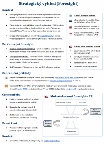 Zajímá Vás rozvoj strategického foresightu? Kontaktujte nás nebo se podívejte na náš web s metodikami a podklady, jak pracovat s budoucností.