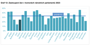 V porovnání zastoupení žen ve vládách v roce 2024 ČR skončila téměř poslední v rámci zemí EU (EIGE, 2025). Hůře skončilo jen Maďarsko, které nemá ani jednu ženu ve své vládě.