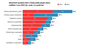 Ženy dosáhly vysoké úrovně vzdělání. V porovnání s muži ženy dokonce častěji úspěšně dokončí vysokoškolské vzdělání (60 % osob v ČR absolvujících magisterský obor jsou ženy) (ČSÚ, 2023). Nicméně ani větší počet absolventek vysokých škol nedokáže zabránit předsudkům a stereotypům ve vzdělávacím systému. Některé české školy stále podporují rozdílné vzdělávací osnovy pro ženy a muže. Až třetina základních škol v jednom českém okrese umožňovala rozdílné vzdělávací osnovy pro chlapce a dívky (Kalenská in Mužské právo II, 2025). Tyto rozdílné osnovy, kdy chlapci se učí opravovat vázání lyží a dívky prostírat stůl, pak nepřímo objasňují, proč je v ČR tak velký rozdíl v péči o domácnost mezi muži a ženami. Odlišný přístup ke vzdělávání dívek a chlapců není založen pouze na odlišných osnovách, ale i na samotném chování vyučujících (Smith, Sokolová, 2022). Jedná se tak o obecnější fenomén, které je potřeba řešit celkovým přístupem ke vzdělávání, tedy genderově citlivým vzděláváním.