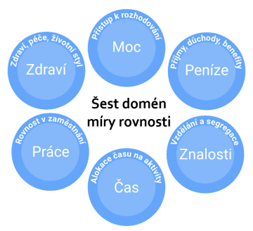 EIGE (2024) měří míru rovnosti na základě šesti oblastí. Zvažuje práci, peníze, znalosti, čas, moc a zdraví. Celkově je bráno v úvahu 31 různých indikátorů. Kromě běžných, jako např. podíl žen a mužů, kteří pracují na plný úvazek, nebo podíl žen a mužů v parlamentu, tu najdeme i méně obvyklé. Jedná se například o procento osob, které považují za velmi snadné si vzít jednu až dvě hodiny volno během pracovního dne na zařízení osobních nebo rodinných záležitostí (v ČR se jedná o 18 % žen a 28 % mužů).