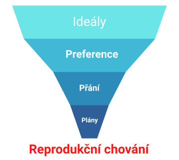 Reprodukční ideály, preference, přání a plány tvoří sestupnou linii od představ až k reálnému reprodukčnímu chování. Liší se mírou abstrakce, osobní angažovaností a realističností. Reprodukční ideály představují nejabstraktnější úroveň – jde o obecné představy o tom, kolik dětí by bylo ideální mít v rodině, často sdílené na úrovni celé společnosti. Tyto ideály odrážejí kulturní normy a hodnoty, ale nejsou navázány na konkrétní životní situaci jednotlivce (Hašková & Pospíšilová, 2020).
