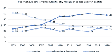 Dopady rozpadů vztahu na porodnost mohou být značné - nestabilní soužití přirozeně vede k odkládání rodičovství. Na druhou stranu nelze tvrdit, že setrvávání v nefunkčním manželství či partnerství je prospěšné pro partnery, ani jejich děti, a to zejména pokud se ve vztahu vyskytují patologické vzorce chování, násilí nebo chronický konflikt. Tento názor sdílí i většina české společnosti - s přijatelností rozvodu, pokud je rodina nefunkční, souhlasí 85 % populace (Kyselá, 2024) a stejný podíl souhlasí i s tím, že lepší je žádný než špatný partnerský vztah (Paloncyová et al., 2023).