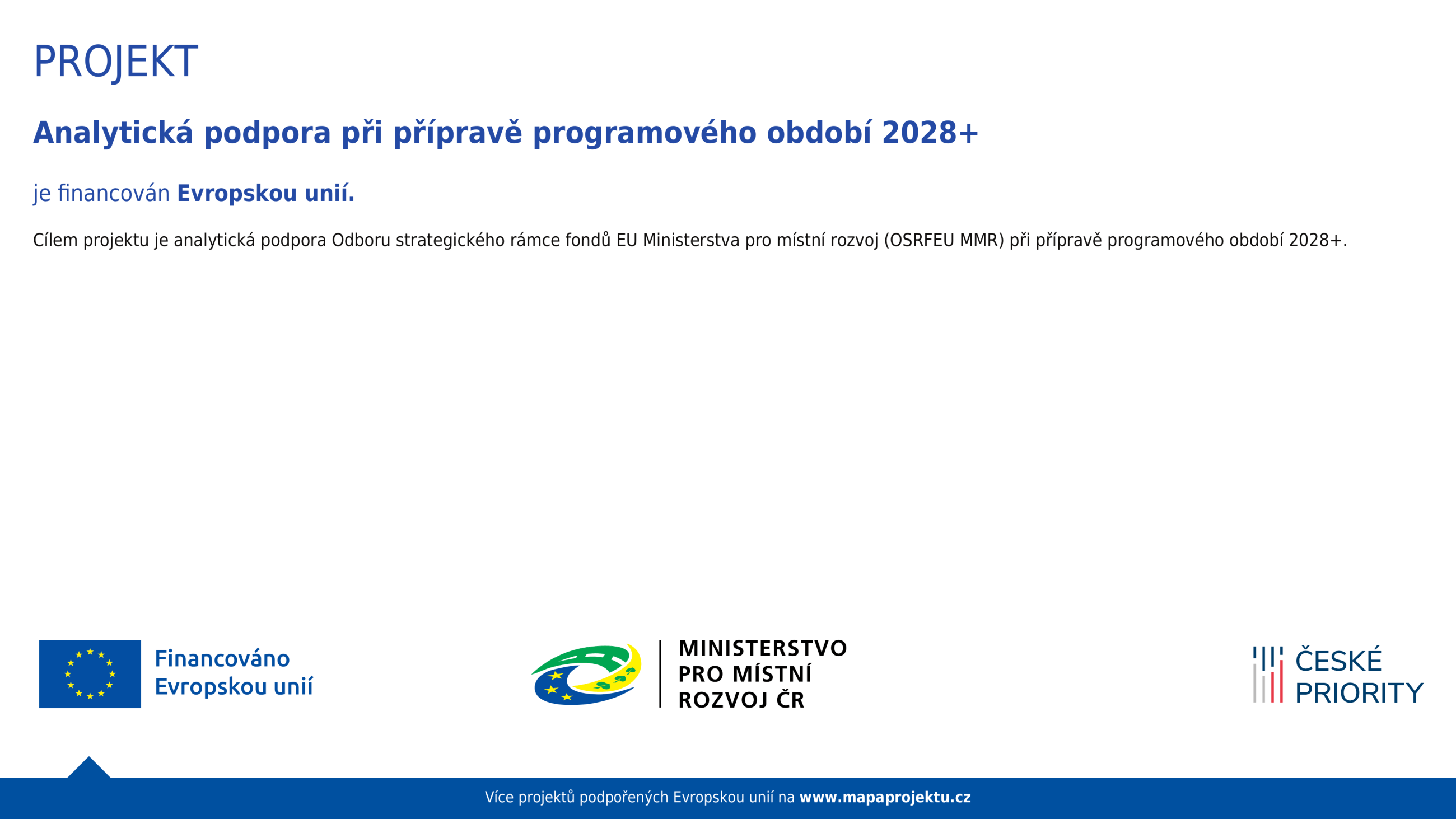 In this project, we provide analytical and expert support to the Ministry of Regional Development (MMR) of the Czech republic in preparing the 2028+ EU budget programming period.