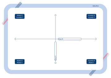 Šablona níže odkazuje na ilustrativní postup Government Office for Science (2017), a sice poslední kolo Delphi. Na obě osy je možné dosadit jakoukoliv proměnnou: relevance, jistota, urgence řešení, důležitost, míra konsensu respondentů apod.